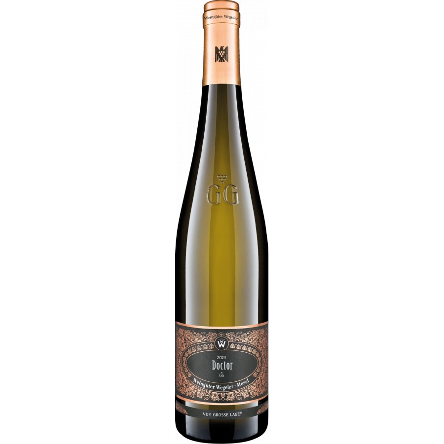 Since the 2023 vintage, our Doctor GG has been fermenting and maturing (partially) in used oak casks – a real boost in quality. This requires inner density and pressure in the wine; otherwise, wood would be counterproductive. The youthful nose exhibits the typical Doctor spiciness, yeast, fine toasty aromas, and precise acidity. For us: the best GG from this world-class vineyard. 93 POINTS CUP OF GOURMET WORLDS Vineyard & Terroir In 1900, at the height of Mosel Riesling's popularity, Julius Wegeler had the unique opportunity to purchase a portion of land in the heart of the Bernkastel Doctor vineyard from the then-mayor, Kunz. The price at the time, 100 gold marks per vine, surpassed anything seen before and was hotly debated in the industry. Wegeler acquired 4,300 square meters, with the price including not only the vines but also the historic Doctor cellar dating back to 1650 and the wine stored within. A further acquisition in 1910 made the Wegeler winery the largest owner in this historic vineyard. An investment whose foresight has proven its worth to this day: the Doctor vineyard remains the most expensive in Germany. The legendary Bernkasteler Doctor rises steeply above Bernkastel at an altitude of 125 to 200 meters above sea level. According to legend, it received its name from Archbishop Boemund II, who, cured of a serious illness, referred to this vineyard as the "true Doctor." Internationally, Doctor wines consistently rank among the very best. At 3.26 hectares, it is one of the smallest single vineyards in Germany.